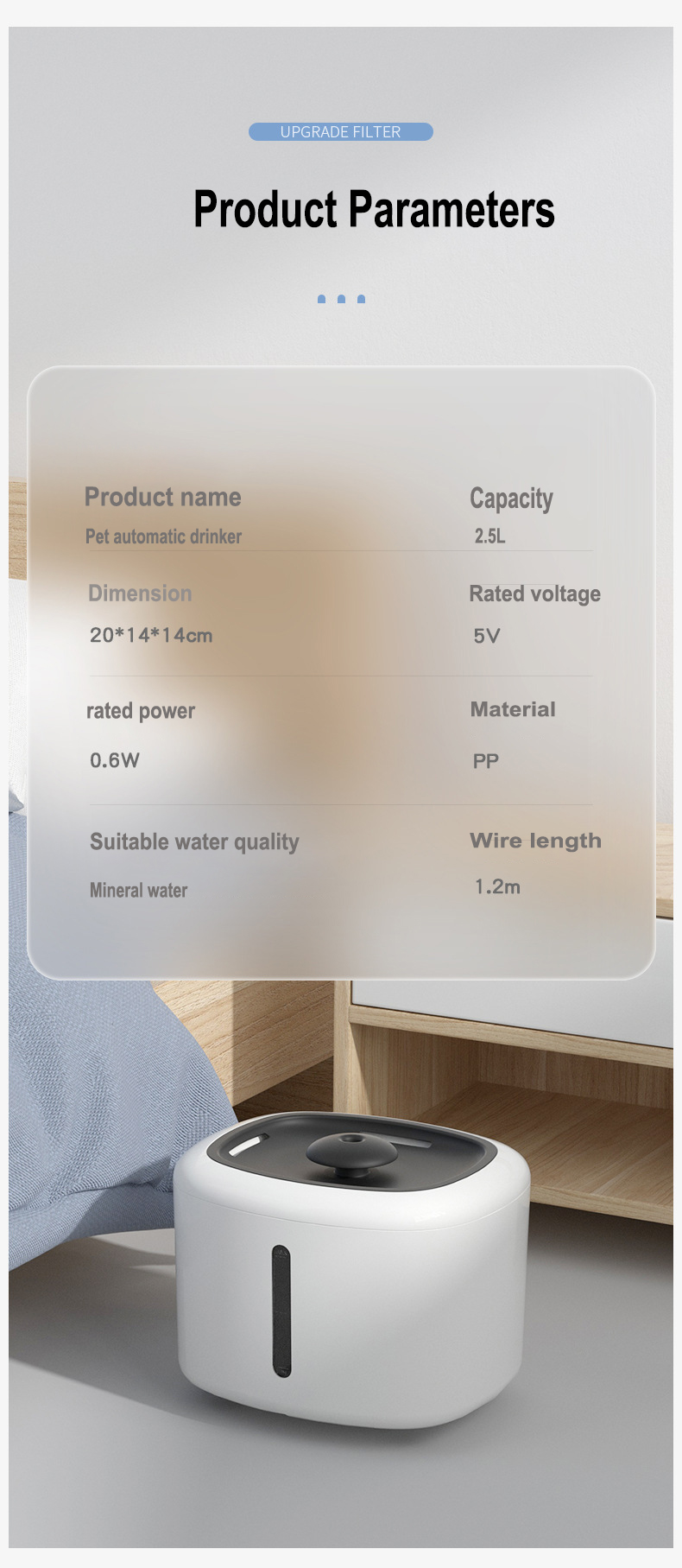 USB cable Automatic cat feeder, water dispenser, large capacity cat bowl,