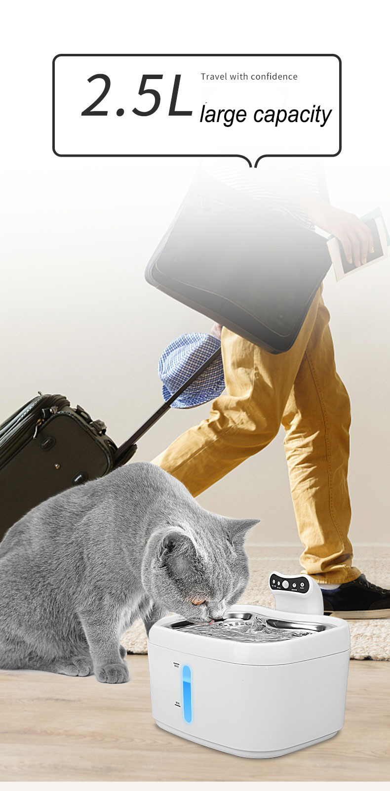 2. When the amount of drinking water continues to increase, please confirm whether your pet has recently eaten too salty or too dry food, hot weather, or increased exercise